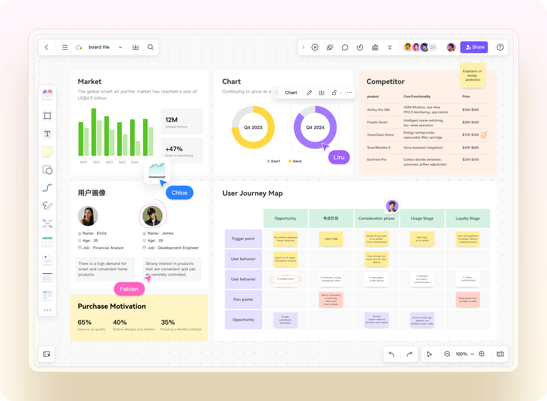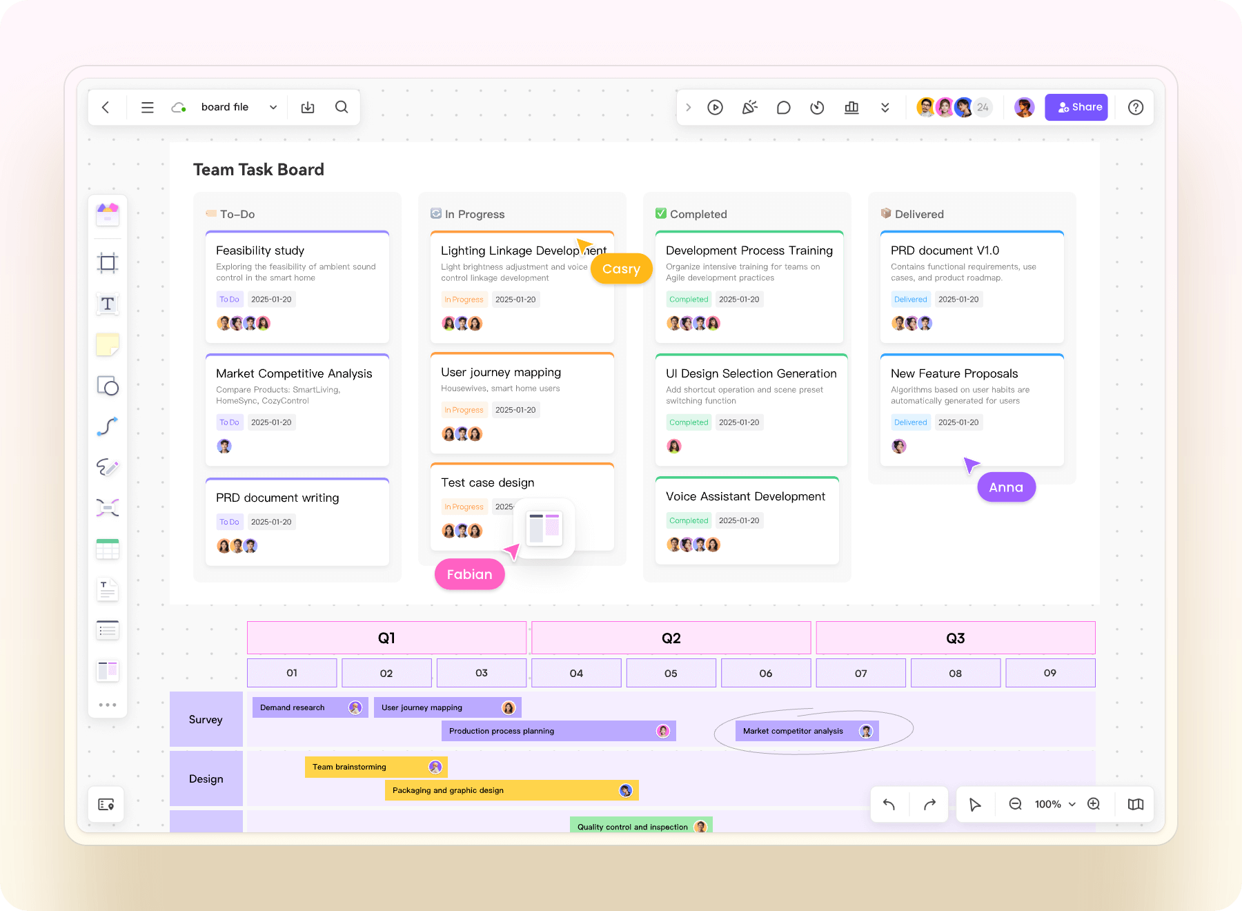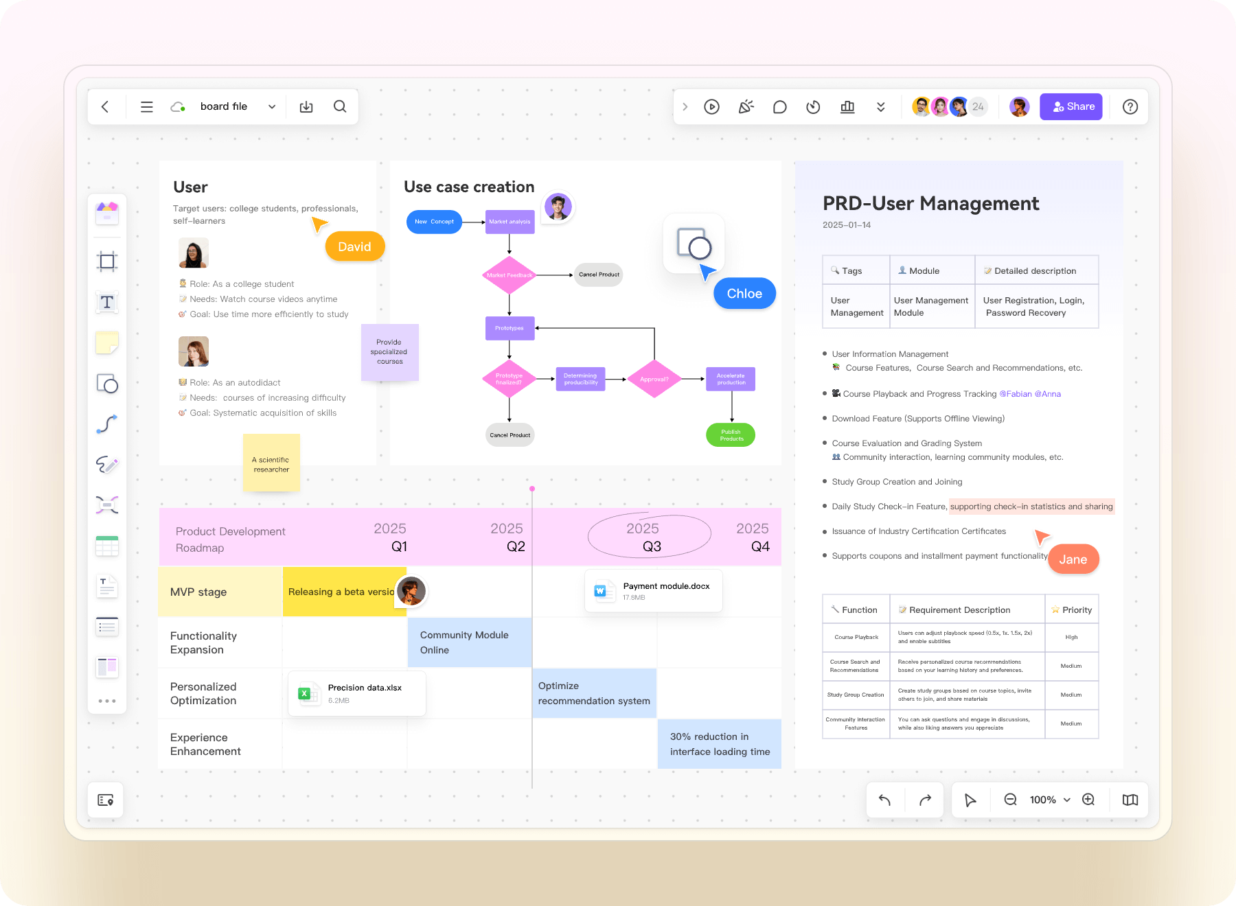 Market analysis, product planning, requirements sorting, task follow-up, team